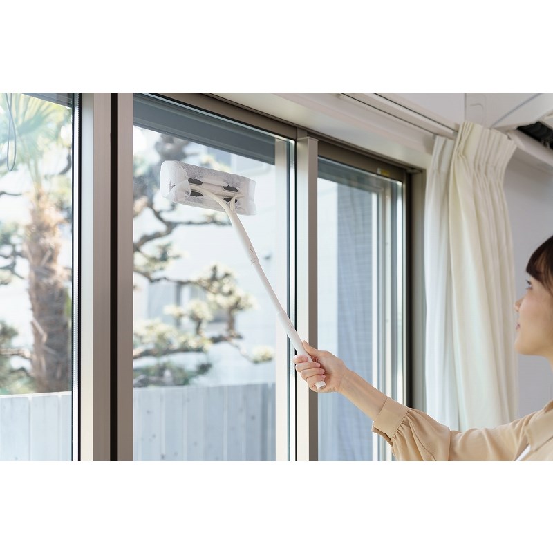 市販の窓・網戸掃除用のシート、または付属のモップを取り付けて窓・網戸をラクラクお掃除ができます。