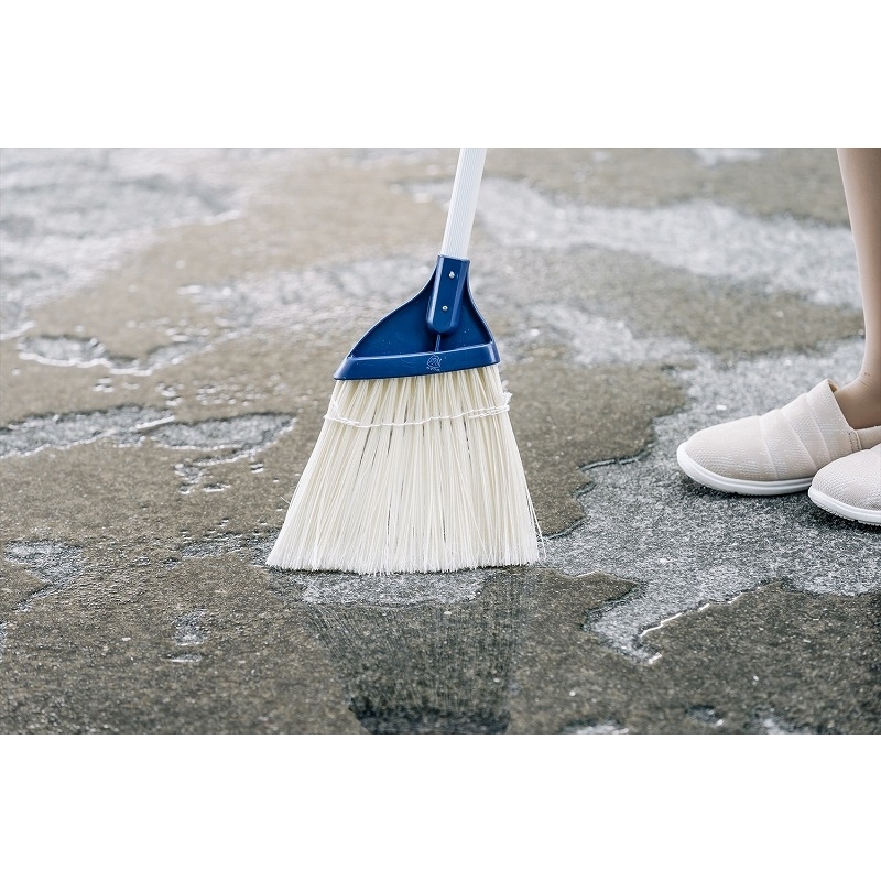 化学繊維100%で水気の多い所、水を流しながらのお掃除にピッタリ!柄が長くなって楽に掃けます。日本製。