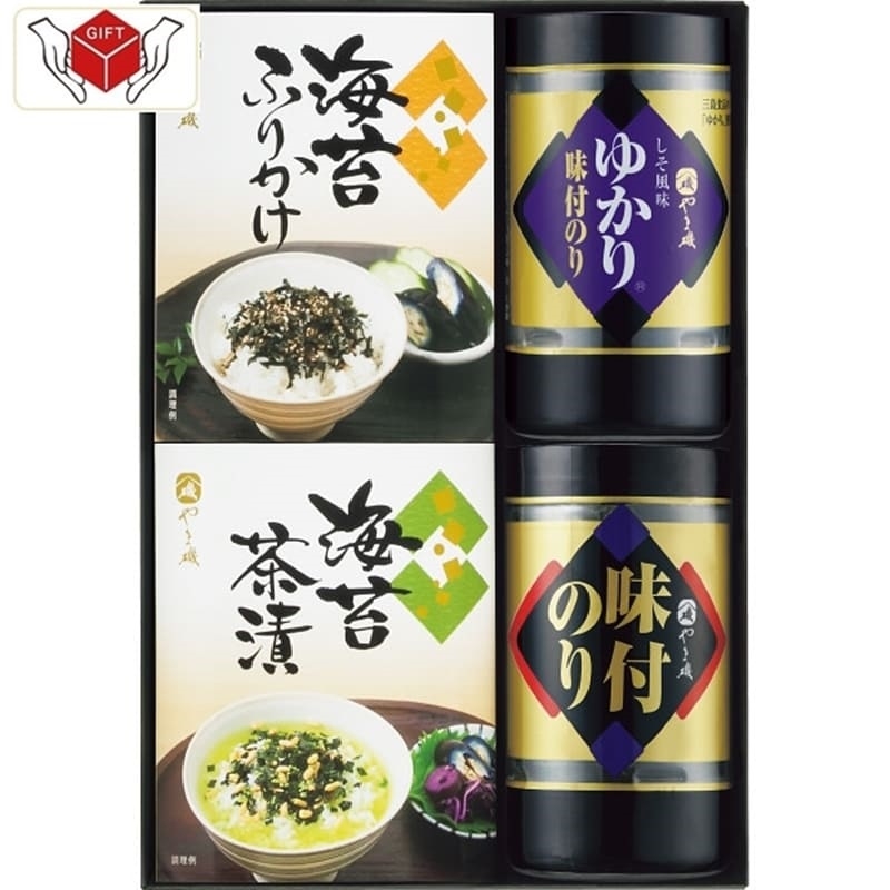 味付のり(8切24枚)、しそ風味のり(8切24枚)、海苔茶漬け(5.5g×3袋)、海苔ふりかけ(5g×3袋)