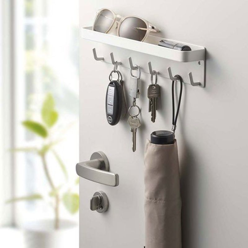 スチール壁面に磁石で簡単取り付けのキーフック&トレイ。