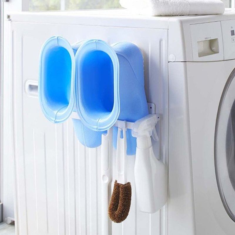置き場所に困るバスブーツを洗濯機横に磁石でスリムに収納。