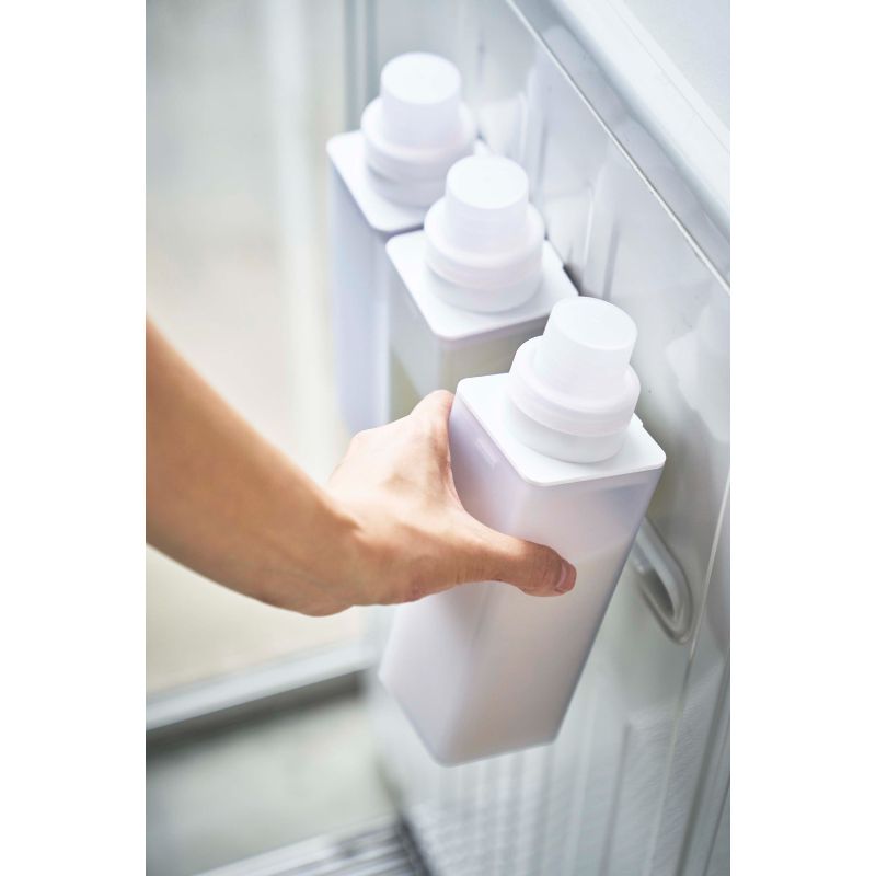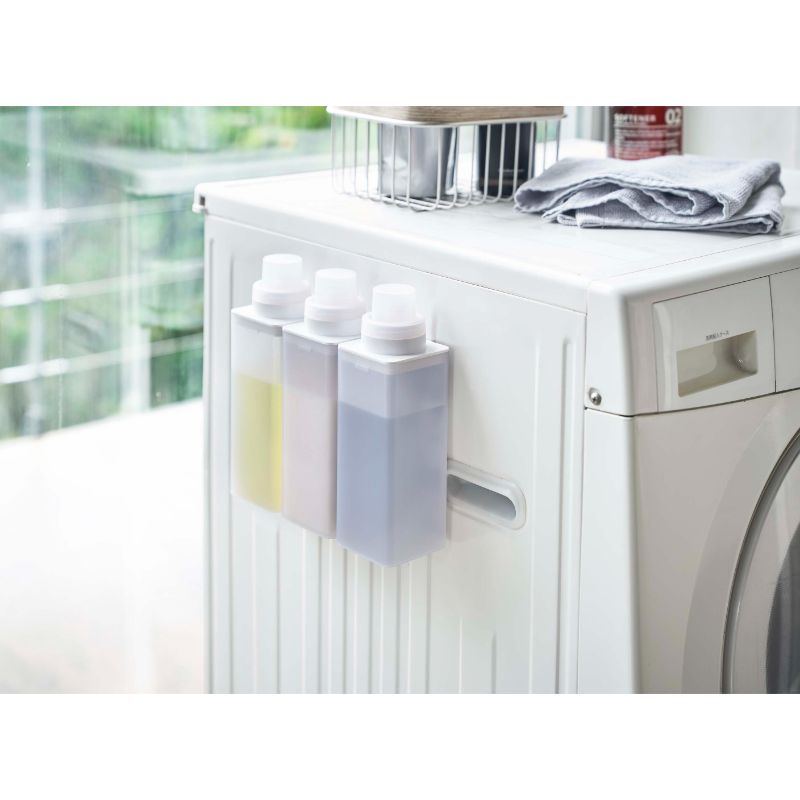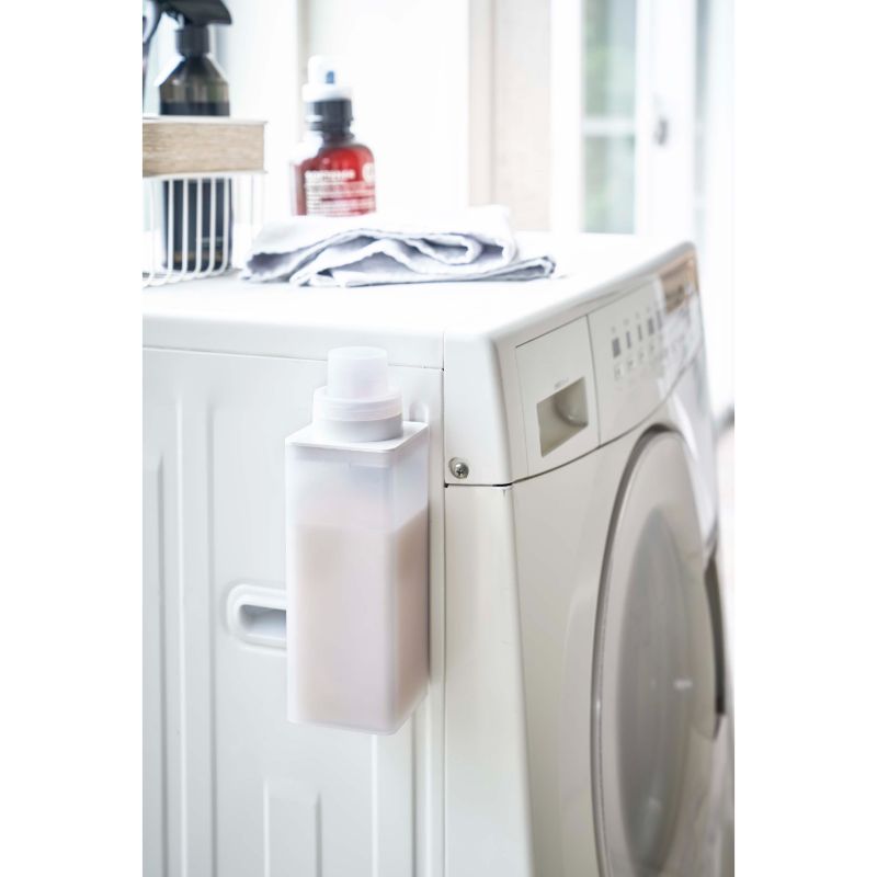 マグネットで洗濯機に簡単取り付けの詰め替え用ランドリーボトル。残量が見えるクリアタイプ。