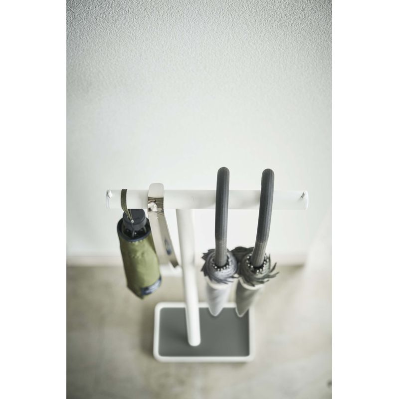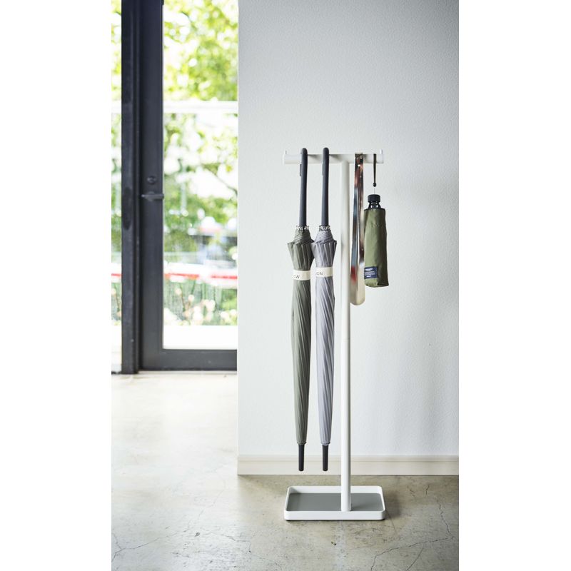 折り畳み傘や靴ベラも掛けて収納。前後に掛ければ最大8本収納可能。耐荷重 約4kg