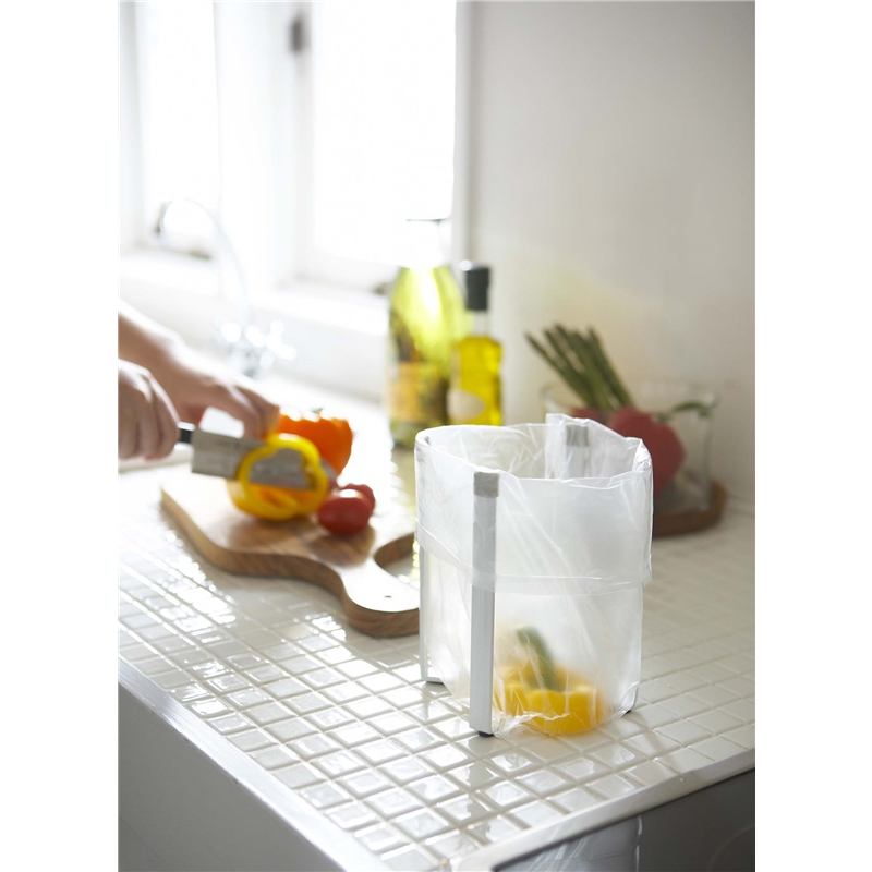ポリ袋を掛けて調理中にでる野菜クズや資源ゴミを、その場でポイ!