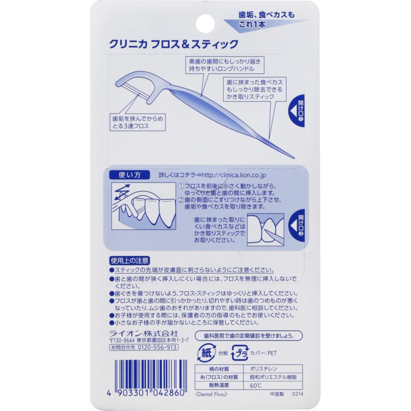 ●3連フロスとかき取りスティックを備え、これ1本で歯間の汚れから食べカスまで、スッキリケアできるデンタルフロスです。