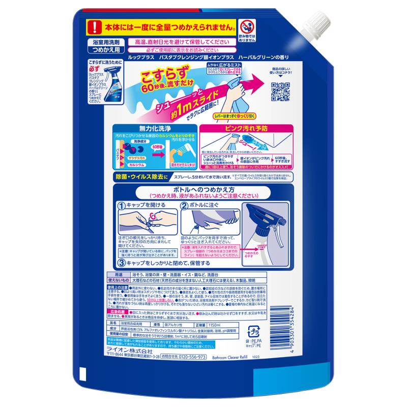 ●1プッシュ1m出るバスタブクレンジングに「銀イオン」配合だから、広範囲をこすらずに除菌できる