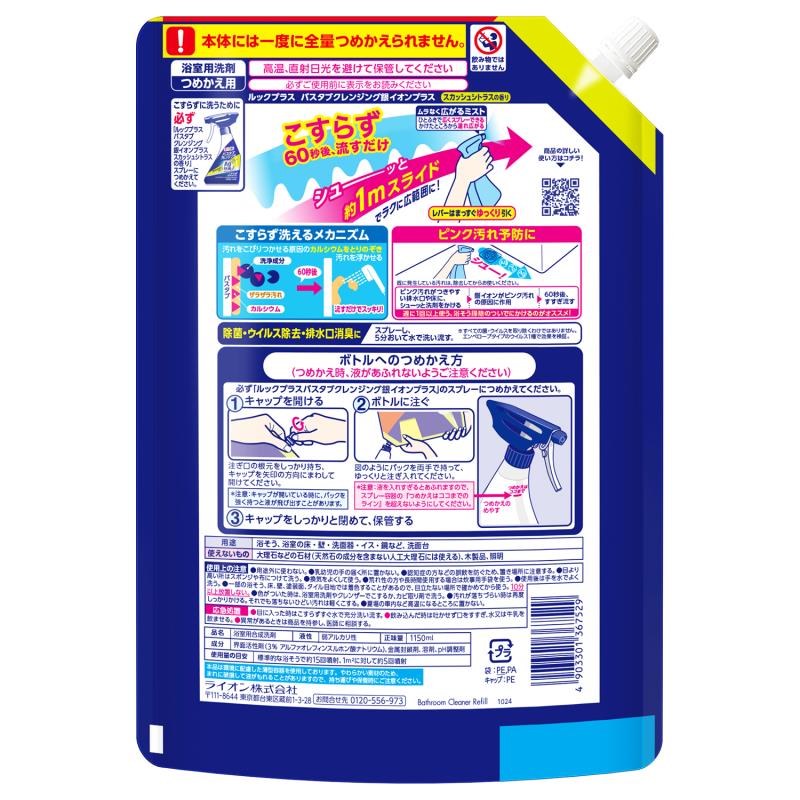 ●1プッシュ1m出るバスタブクレンジングに「銀イオン」配合だから、広範囲をこすらずに除菌できる