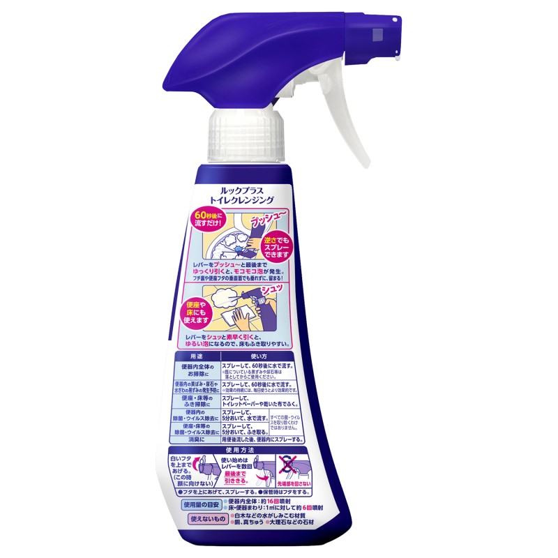 - 密着泡で60秒後に流すだけで掃除ができるトイレ用洗剤