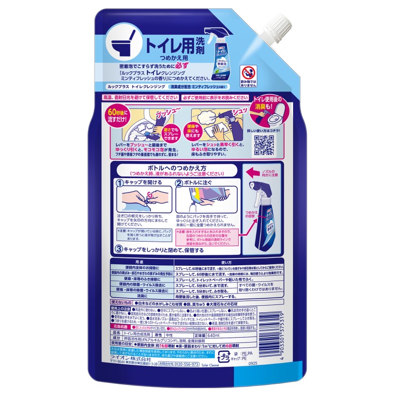 ●密着泡でこすらず洗うために必ず「ルックプラス トイレクレンジング ミンティフレッシュの香り」につめかえてください。