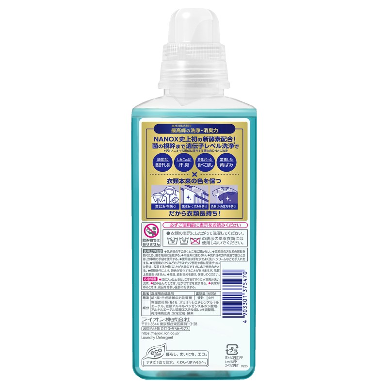 ●菌の根幹まで遺伝子レベル洗浄(※6)…頑固な部屋干し臭・しみこんだ汗臭・時間がたった食べこぼし・蓄積した黄ばみ。