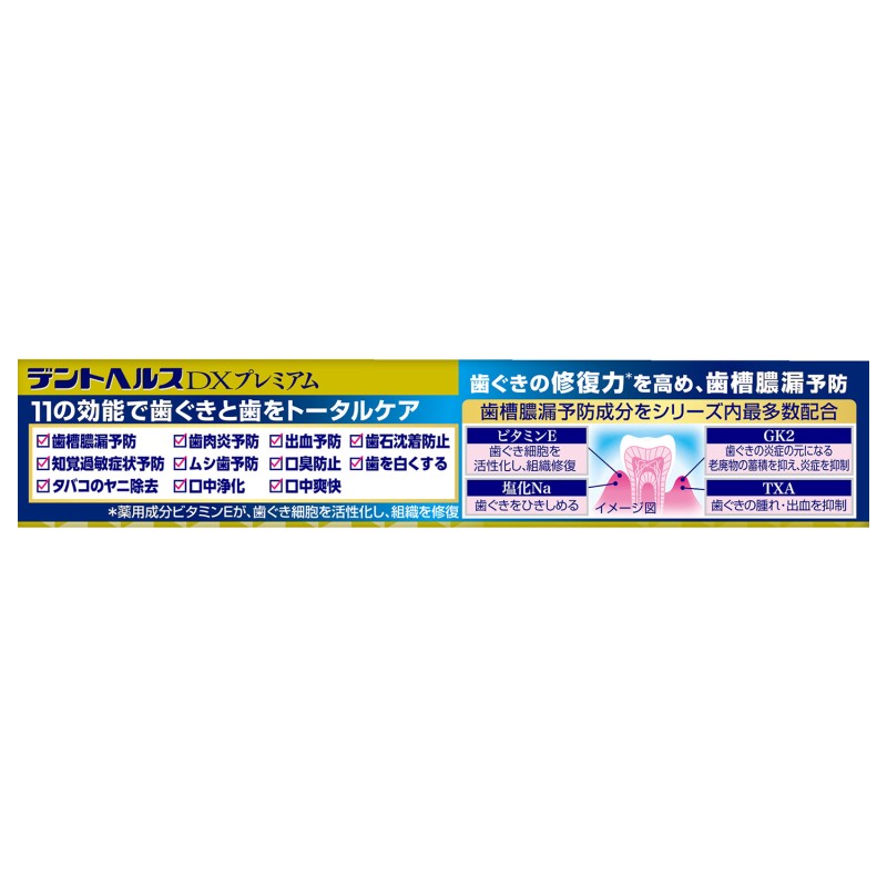 ●11の効能で歯ぐきと歯をトータルケア。(歯槽膿漏予防、歯肉炎予防、出血予防、知覚過敏症状予防、口臭防止、ムシ歯予防、歯