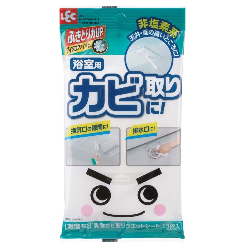 非塩素系の浴室用カビ取りシートです。乳酸配合で、拭くだけでカビの原因菌を除去します。