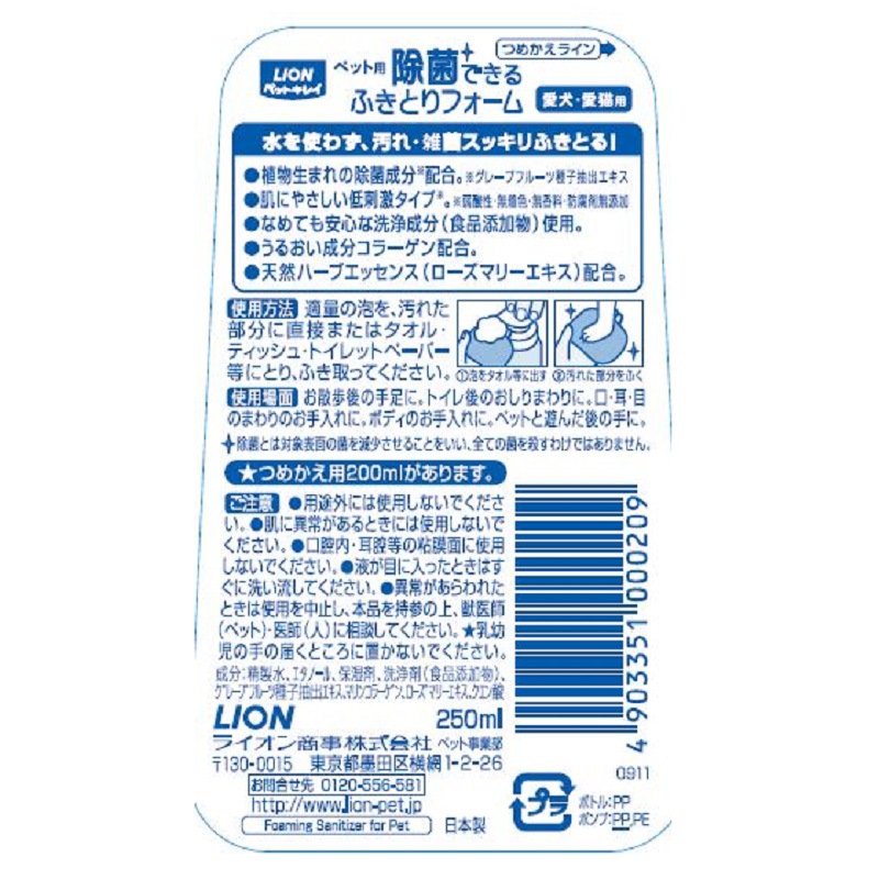植物生まれの除菌成分配合。ペットがなめても安心です。