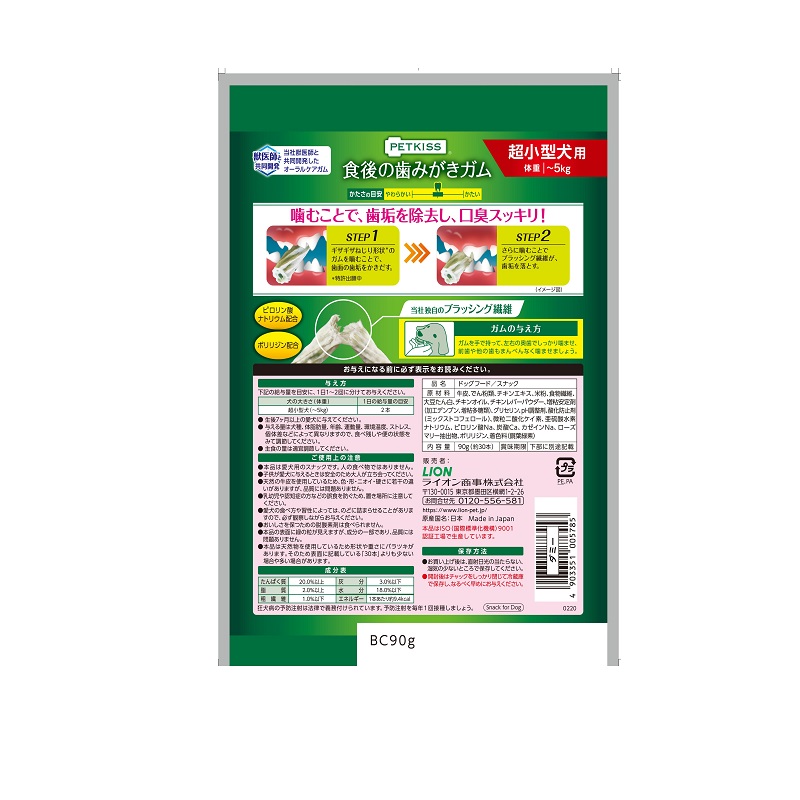 当社獣医師と共同開発した歯みがきガム。当社独自のブラッシング繊維のガムをギザギザねじり形状に。
