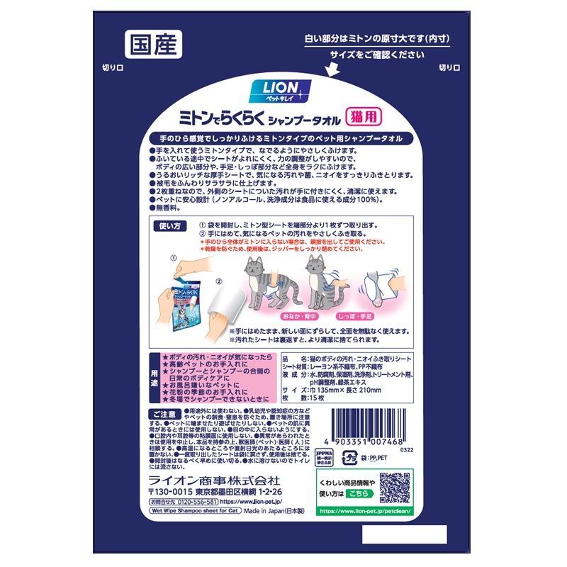 ペットに安心設計(ノンアルコール、洗浄成分は食品に使われる成分100%)。無香料。