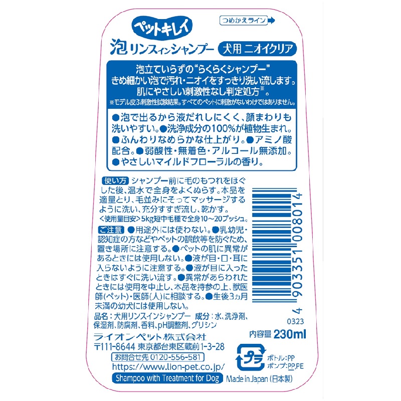 - 水、洗浄剤、保湿剤、防腐剤、香料、pH調整剤、グリシン