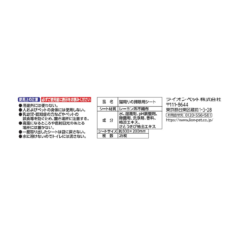- シート材質:レーヨン系不織布 成分:水、湿潤剤、pH調整剤、除菌剤、洗浄剤、香料、柿渋エキス、