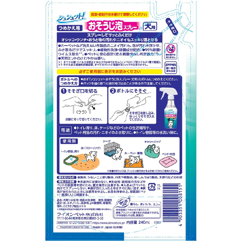 シュシュット!おそうじ泡スプレー 犬用 つめかえ