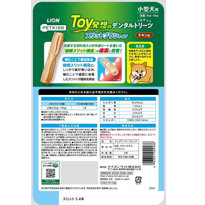 PETKISS Toy発想のデンタルトリーツ スリットブラシタイプ 小型犬用 チキン味4本