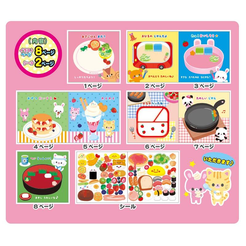 8ページのイラストページに2シートあるシールを貼ってはがして遊べます。