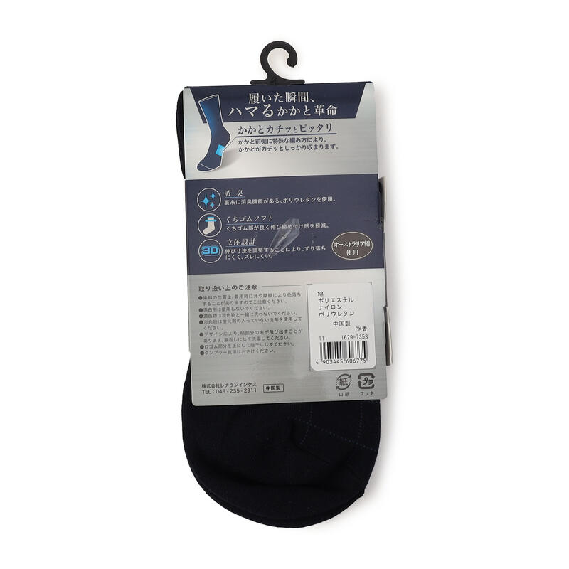 かかと前に特殊編地を入れる事により履いた瞬間、かかとカチッとピッタリ。