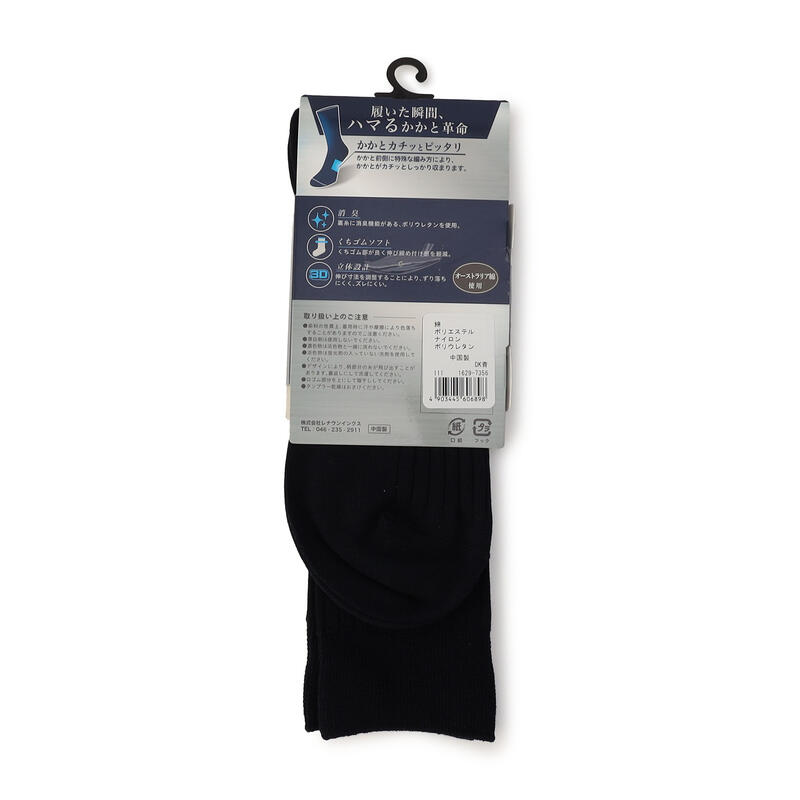 かかと前に特殊編地を入れる事により履いた瞬間、かかとカチッとピッタリ。