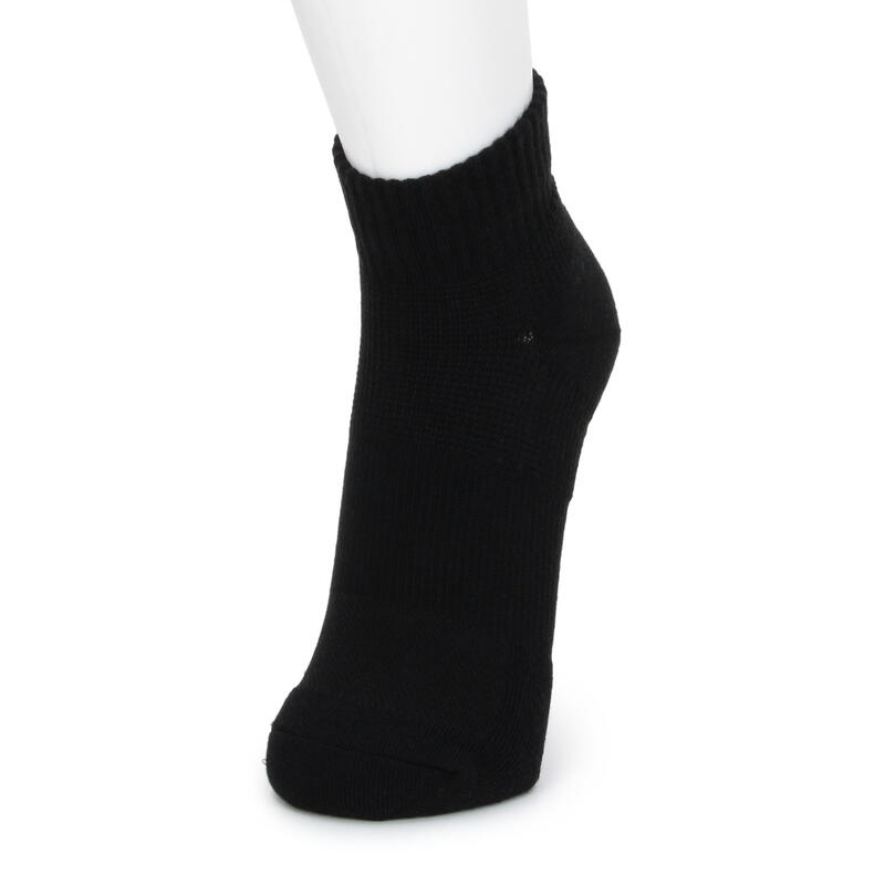 足首からかかと周りをしっかりサポートし、足底パイル編みでクッション性がよく着地の負担も軽減。