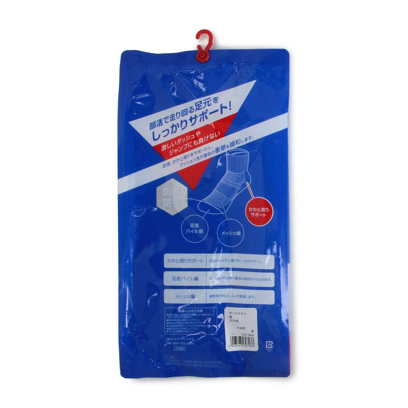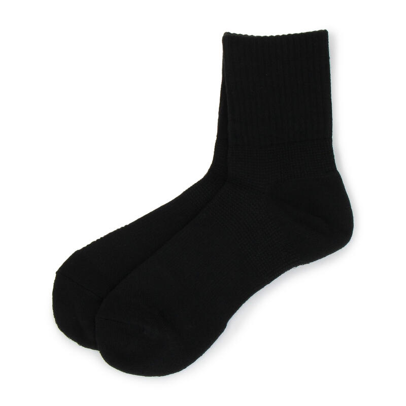 足首からかかと周りをしっかりサポートし、足底パイル編みでクッション性がよく着地の負担も軽減。