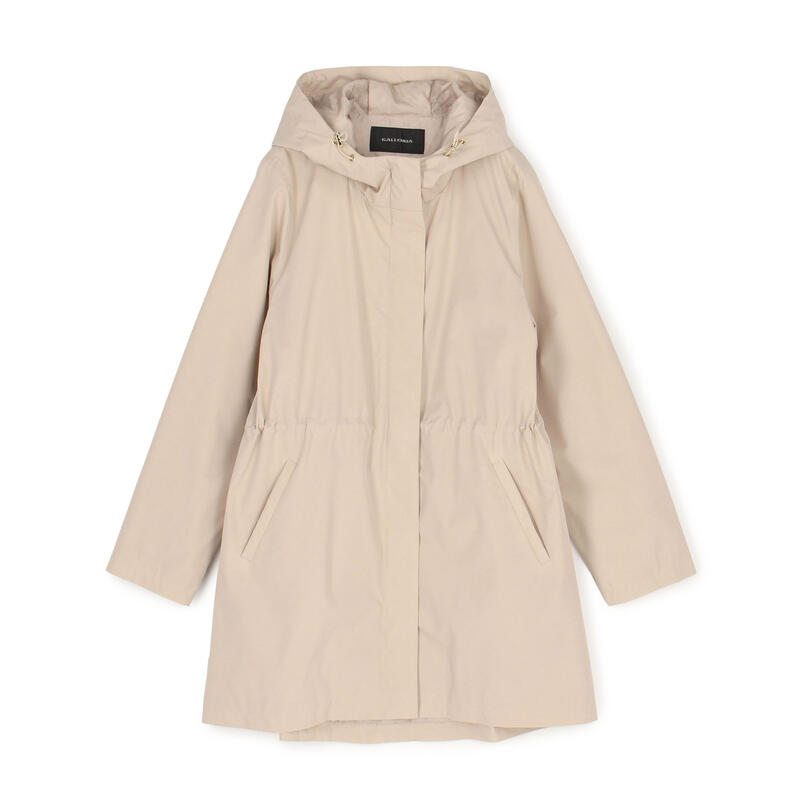 アイロンを軽く浮かせて掛けてください。はっ水加工が施されていますが、完全防水ではないため強い雨に注意し、