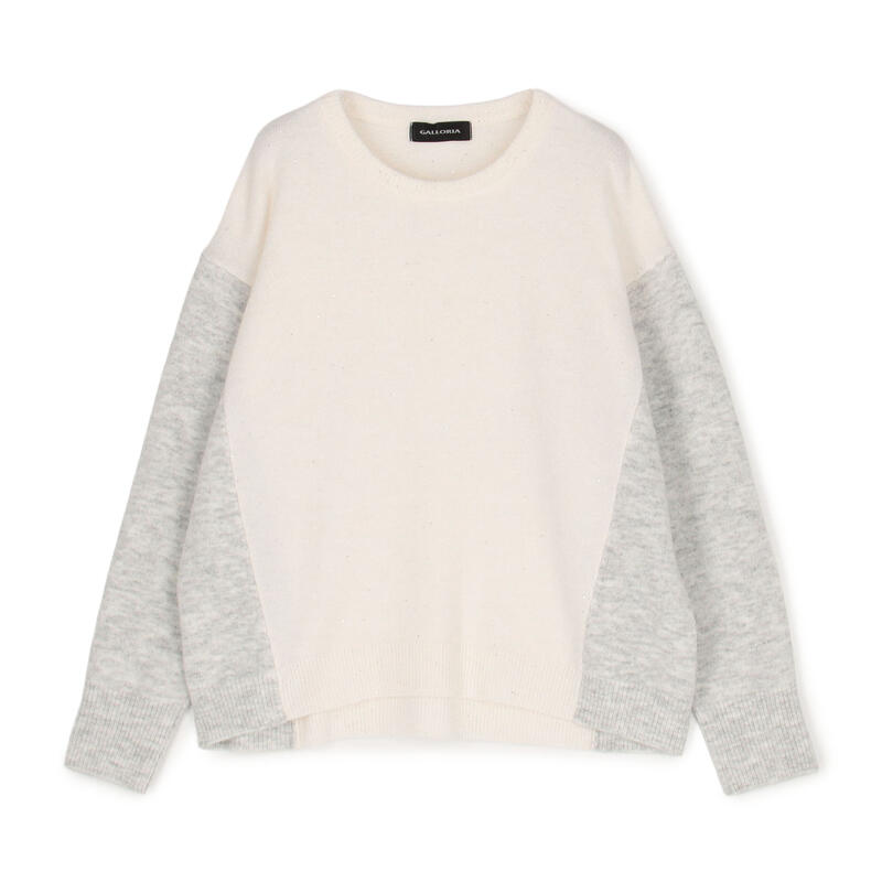 配色切替ニット:脇の配色切替デザイン&リラックス感のあるゆったりシルエットがポイントです。