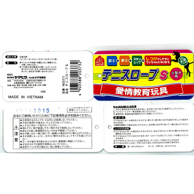 - 紐:ポリプロピレン、ボール:天然ゴム・ポリエステル