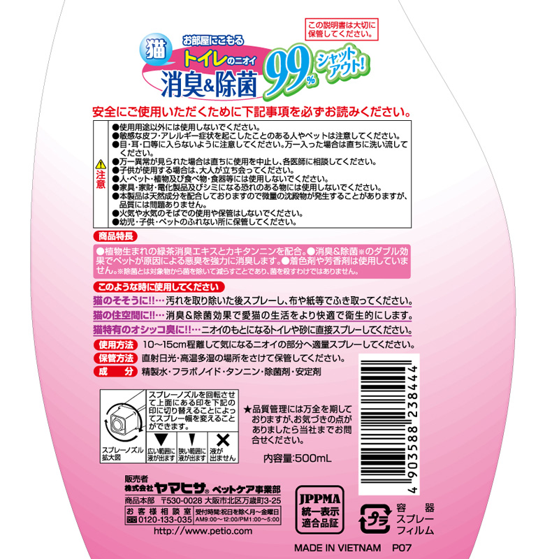 アンモニア・トリメチルアミンを24時間後の消臭率99%でシャットアウト。植物生まれの緑茶エキスとカキタンニンを配合。