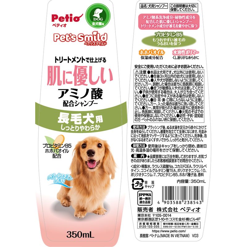 皮脂のベタつきや被毛の汚れを優しく洗います。保湿成分ホホバオイルとプロビタミンB5配合。