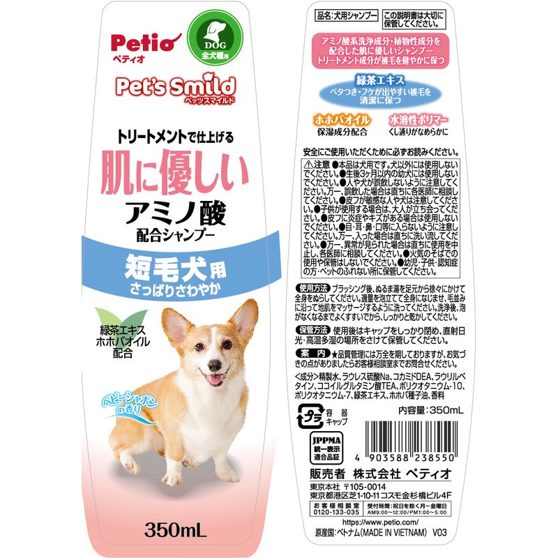 皮脂のベタつきや被毛の汚れを優しく洗います。保湿成分ホホバオイルと緑茶エキス配合。