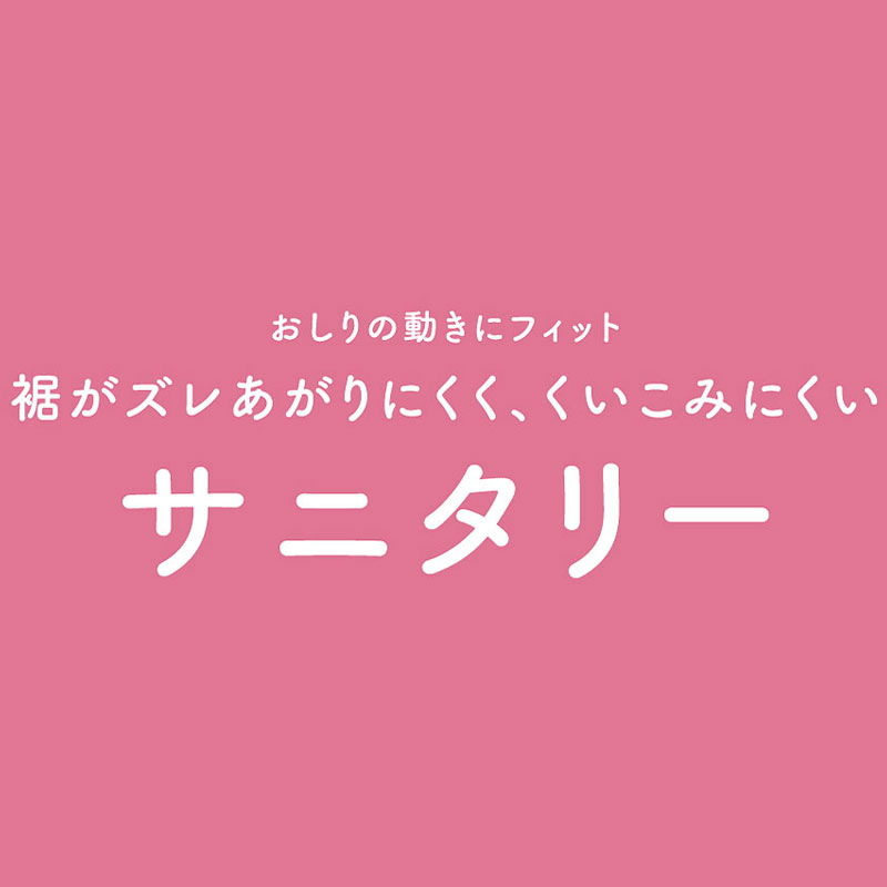 おしりの動きに対応し、動いても裾がズレ上がりにくく、くいこみにくい仕様に。ナプキンのズレも軽減。