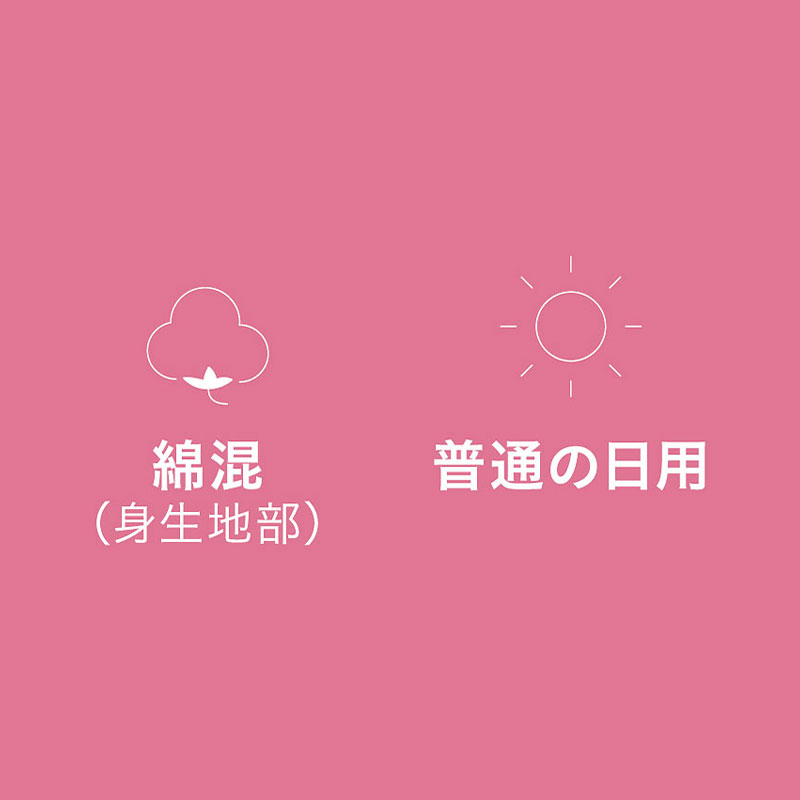 ●やわらかな肌ざわり 身生地部は、やさしい肌ざわりがここちいい伸びのよい綿混素材