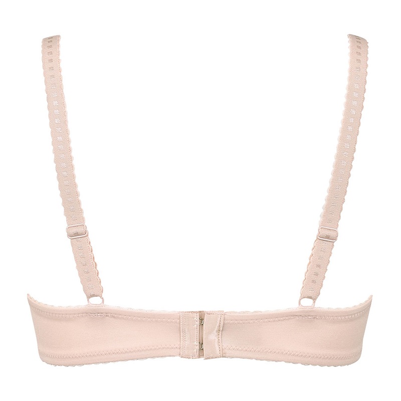深めに設計した3/4カップと、カップ肌側のふんわり綿混素材でバストをやさしく包んで、