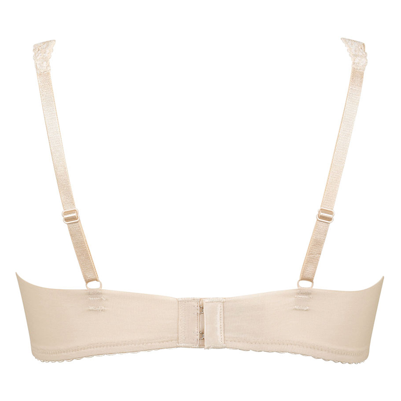 カップ肌側とバックには、ソフトな肌ざわりの綿混素材を使用。