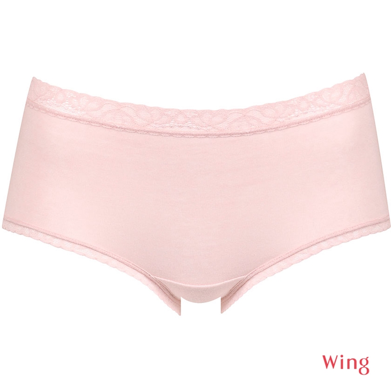 ●やさしい肌あたり 脇に縫い目がないフラットな仕様、ウエストと裾は肌あたりのよいレースを使用