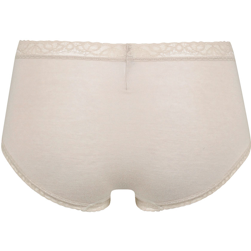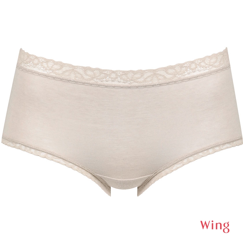 ●やさしい肌あたり 脇に縫い目がないフラットな仕様、ウエストと裾は肌あたりのよいレースを使用