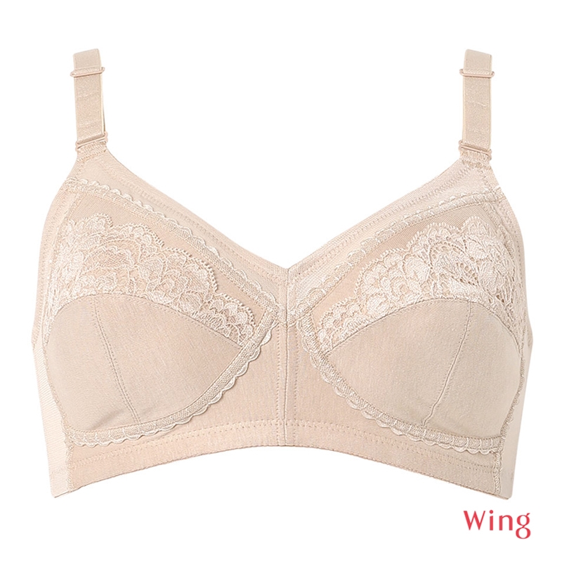 バストをやさしく包みこむようなホールド感がここちいい、ノンワイヤーのフルカップブラ。