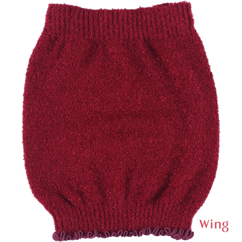●ふんわり、あたたか マシュマロ糸を使いふんわり厚手に編み上げたやさしい肌ざわり