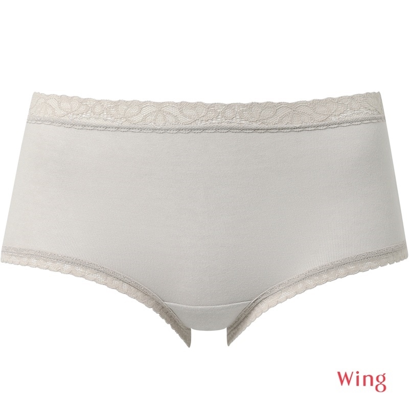●やさしい肌あたり 脇に縫い目がないフラットな仕様、ウエストと裾は肌あたりのよいレースを使用