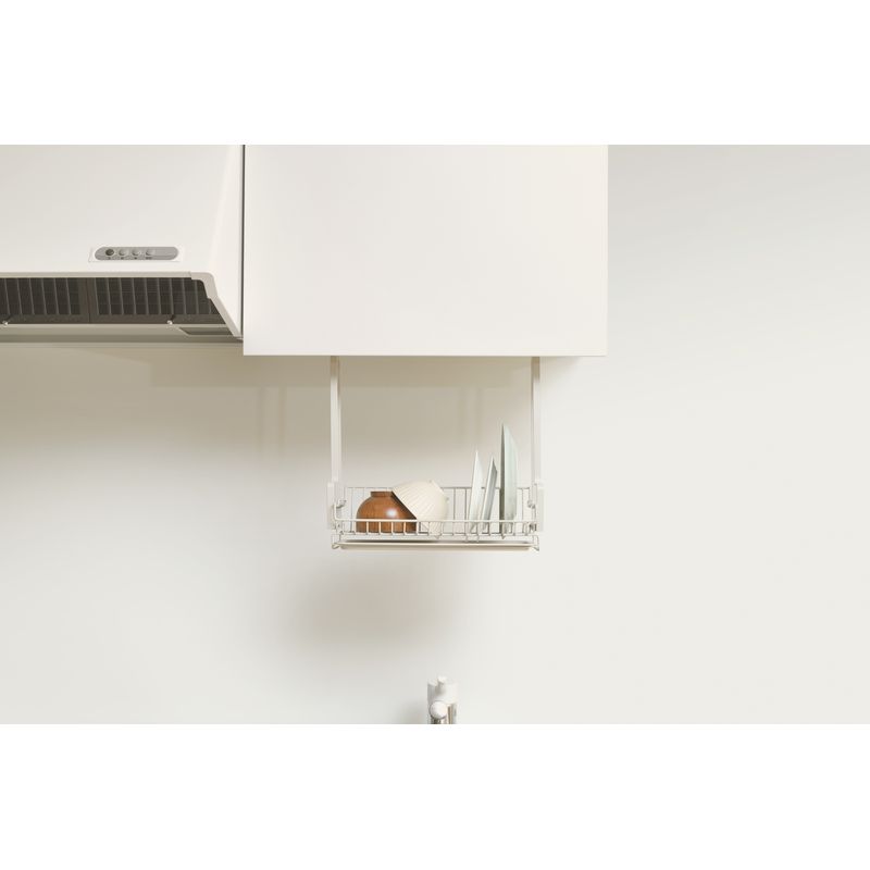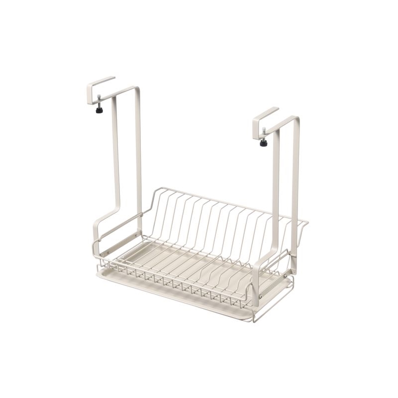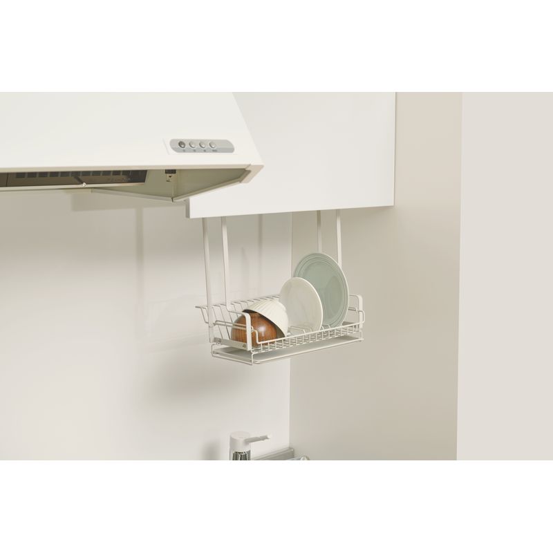 置き場に困らない水切り。棚から吊り下げられるので、作業スペースを圧迫することなく水切りができます。