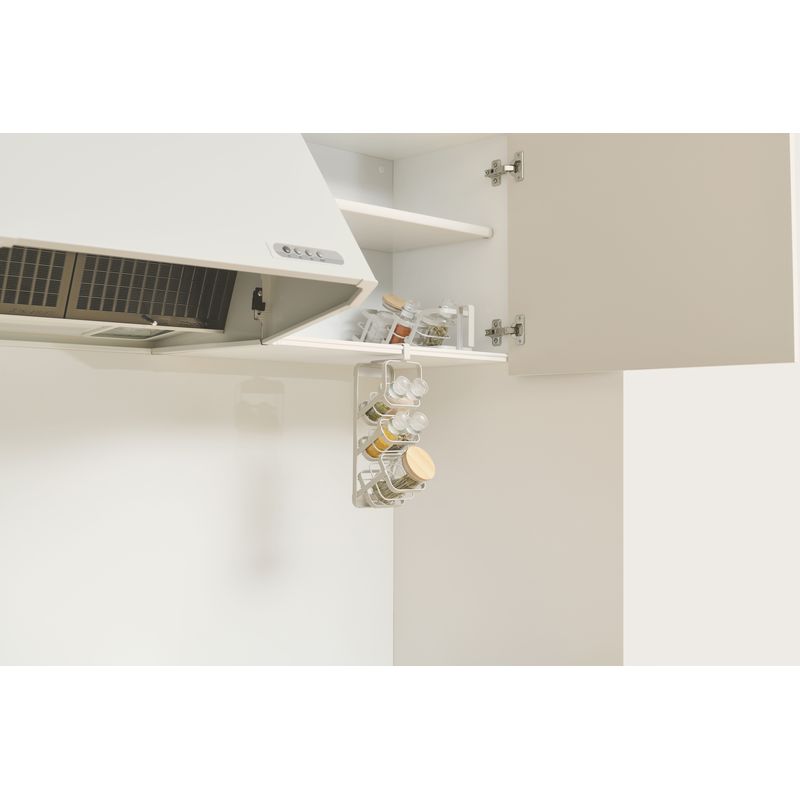 棚から吊り下げられるので、調理の邪魔をせず調味料をさっと出し入れできます。使用後は棚にしまえる2WAY仕様