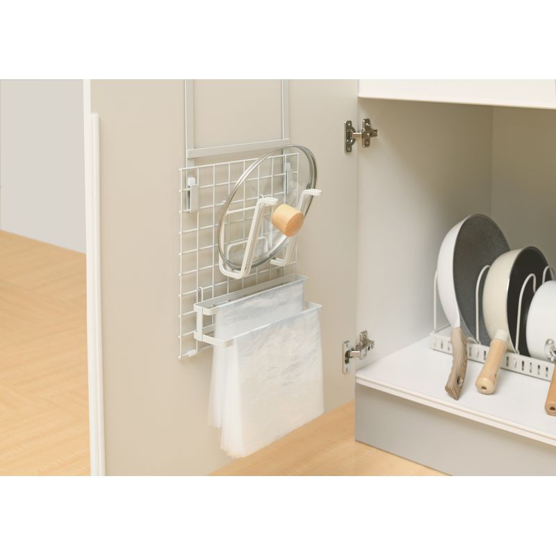 ガラス蓋やコップ、ボトルが掛けられます。角度がついているので取り出しやすい。