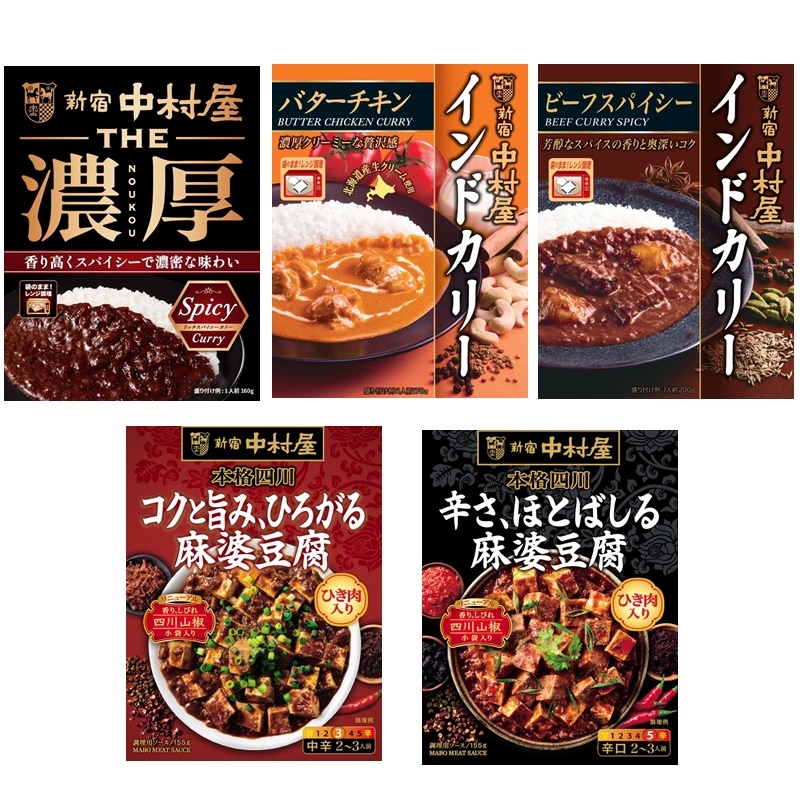 中村屋の人気レトルトカレー3品、麻婆豆腐の素が2品入ったお得な福袋です