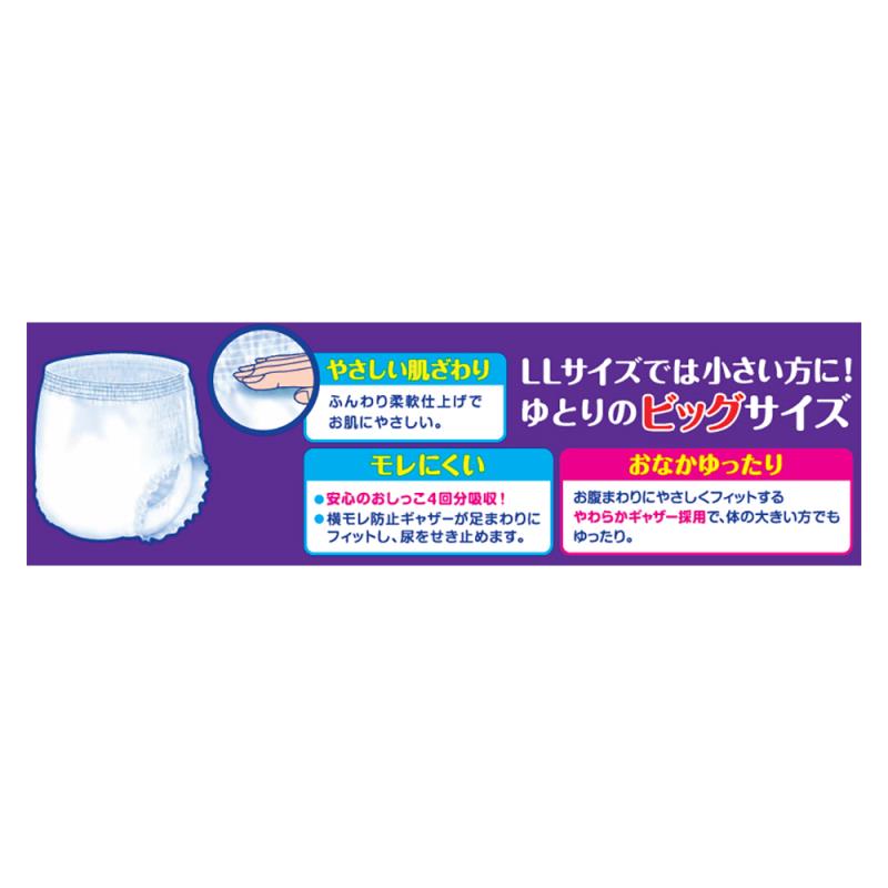 ●横モレ防止ギャザーが足まわりにフィットし、尿をせき止めます。