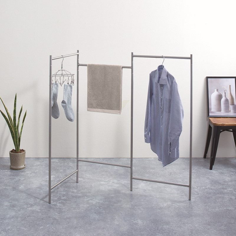 軽くて丈夫な、高級感のあるオールステンレス仕様。Yシャツが干せる程よい高さなので、圧迫感なく使えます。