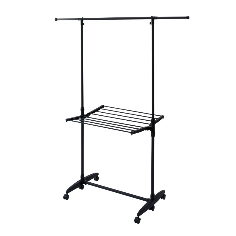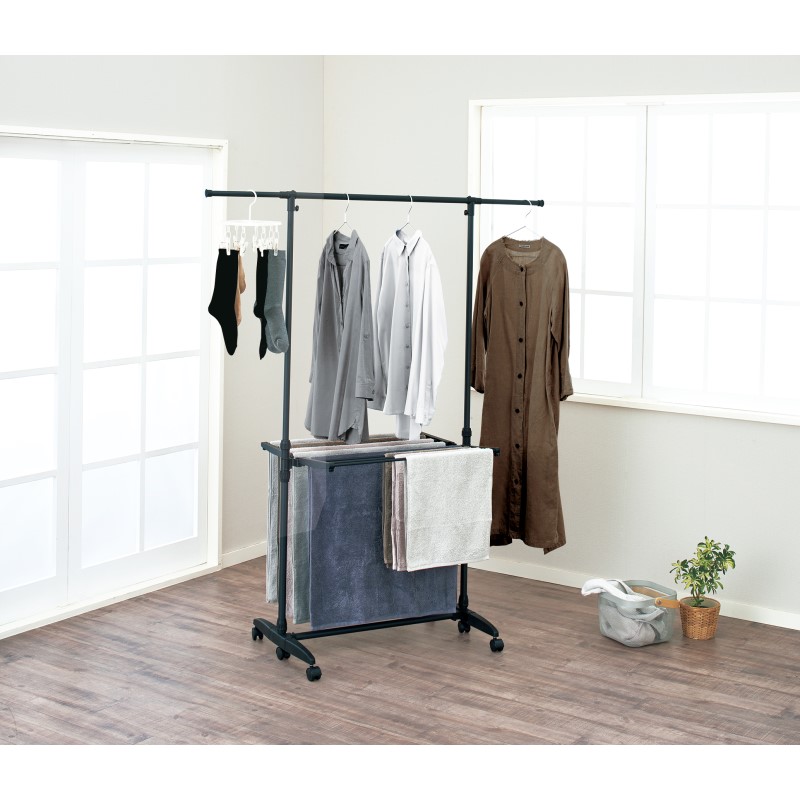 干すものに合わせて幅や高さを調整できる室内物干しです。キャスター付きで移動もスムーズ。